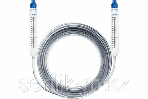 Гидроуровень с усиленной измерительной колбой большого размера, d 8мм, 15м, работает по принципу сообщающихся сосудов. Благодаря длинному шлангу возможно использование на больших расстояниях. Модель предназначена для разметки и контроля горизонтальности поверхностей и конструкций.